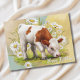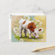 Tarjeta de cumpleaños campestre de ternera linda en campo de margaritas.