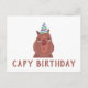 Este diseño presenta una ilustración de carpincho con el texto personalizable "Cumpleaños Capy" en la parte delantera y la etiqueta "por favor entregue a:" en la parte trasera. Tarjeta divertida y linda para el amante de los animales que adora a los carpinchos y su cara de piedra natural, mirada inexpresiva.