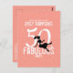 Este diseño cuenta con una postal de cincuenta y fabulosa invitación al cumpleaños, con un presupuesto moderno fiesta de 50 años lindo, un elegante purpurina de moda de moda, elegante, 50 y fabuloso cincuentenario, elegante, sencillo, mínimo, minimalista, a la moda, tipografía de cócteles, vítores a 50 años, estupendo para mujeres adultas femeninas, celebración de fiestas bash de hito, haciendo que 550 se vean bien, colores