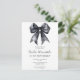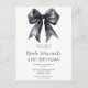 Tarjeta de invitación de cumpleaños bonita con un lazo de coqueta negro. Las palabras se pueden cambiar para adaptarse a tus propios detalles o requisitos