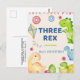 Postal Cumpleaños de 3 años con tres niños Rex Dinosaurio
