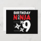 Postal Cumpleaños de 9 Años Estrellas de la Fiesta Ninja