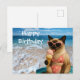 Celebra un cumpleaños perfecto con esta tarjeta postal de tema de playa que presenta a un gato siamés fabuloso que absorbe el sol con un atuendo glamuroso y gafas de sol. Con olas del océano y ambiente de fiesta, esta tarjeta postal es ideal para amantes de los gatos que aman la vida en la playa. Envía deseos de cumpleaños que sean tan frescos, lindos y costeros como puedan ser.
