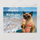 Postal Cumpleaños de amante de gatos con tema de playa