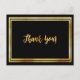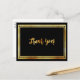 Una tarjeta de agradecimiento para un cumpleaños importante. Un color de fondo negro y un marco de oro falso. En la parte delantera, un estilo de letra a mano y el texto: ¡Gracias! Parte trasera: Plantilla para tu nota de agradecimiento y nombre. Sin color de fondo.