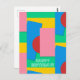 El diseño geométrico colorido y elegante presenta formas en colores rosa, rojo, amarillo, azul y verde en un patrón divertido - junto con un campo de tipografía personalizable, que actualmente dice "¡Feliz Cumpleaños!" para deseos o personalización en fuente blanca. Para solicitudes especiales o preguntas, contacte al artista en wafadahdalcreates@gmail.com. © Wafa Y. Dahdal - Todos los Derechos Reservados. WD Art
