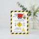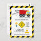Prepárate para divertirte y celebrar con esta divertida invitación de cumpleaños con tema de construcción. Con un camión de volteo rojo brillante, conos de construcción y rayas de precaución en negrita, esta invitación es perfecta para pequeños constructores y futuros capataces. Personaliza con los detalles de la fiesta para crear una celebración memorable para el día especial de tu hijo. Gráficos por PremiumClipart.