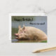 Un cerdo codicioso que habla desea un cumpleaños feliz, luego pregunte "¿Dónde está la torta?", tarjeta postal de cumpleaños con fotos. El texto se puede cambiar o quitar con el botón PERSONALIZAR.