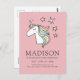 Postal Cumpleaños de Cute Doodle Unicorn y Stars