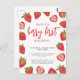 Tarjeta postal de invitación al cumpleaños de fresa Berry First. Personaliza con los detalles de tu evento. Artículos coincidentes disponibles. Ilustraciones originales de la artista. Por favor, contáctame para personalizar y hacer solicitudes especiales. © Zoe Chapman Design