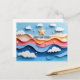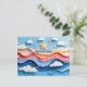 Esta tarjeta postal de cumpleaños personalizable ofrece un diseño de estilo recorte de papel que incluye espirales coloridas, olas, una gran estrella amarilla y nubes blancas.