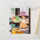 Personaliza el texto si lo deseas o simplemente mantén esto. Hilo y amigos - ¡la combinación perfecta! Saludos de amigos y compañeros de trabajo. Señora adorable con sombrero rosa hecha a crochet. Vestido naranja y rosa oscuro con franja blanca. Galletas y pasteles sobre la mesa.