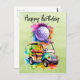 Postal Cumpleaños de golf con carrito de golf acuarela