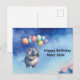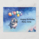 Tarjeta postal de cumpleaños de hipopótamo tematizado con globos