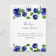 Tarjeta postal de agradecimiento simple y elegante para la fiesta de cumpleaños de la primera fresa con arándanos de acuarela. Diseñada e ilustrada con amor por Kristine Lee Designs www.kristineleedesigns.com