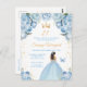 Esta elegante y glamurosa invitación de cumpleaños presenta a una hermosa princesa con cabello castaño en un vestido de gala azul claro. El texto combina la escritura a mano y las fuentes modernas sans serif para un aspecto clásico y sofisticado. Las disposiciones florales, la mariposa y el confeti dorado crean la mezcla perfecta de rústico y chic.