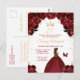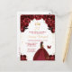 Esta elegante y glamurosa invitación de cumpleaños presenta a una hermosa princesa con cabello castaño en un vestido de baile rojo borgoña. El texto combina la escritura a mano y las fuentes modernas sans serif para un aspecto clásico y sofisticado. Las disposiciones florales, la mariposa y el confeti dorado crean la mezcla perfecta de rústico y chic.