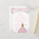 Esta elegante y glamurosa invitación de cumpleaños de invierno presenta a una bella princesa con cabello rubio y piel clara en un vestido de baile rosa. El texto combina la escritura a mano y las fuentes modernas sans serif para un aspecto clásico y sofisticado. Las disposiciones florales, los copos de nieve y el confeti plateado crean la mezcla perfecta de rústico y chic.