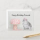 Joven gata persa plateada sombreada lleva su corona de princesa rosa y mira su hermoso pastel de cumpleaños rosa tarjeta postal de cumpleaños de princesa amante de los gatos