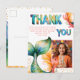 Cumpleaños de la Sirena Colorida Gracias Chica. Feliz cumpleaños de sirena gracias postal por sus amigos y familia. Carga tu foto y personaliza la tarjeta con tu nombre y texto. La tarjeta tiene un colorido cuento de sirenas y colorido texto de agradecimiento.