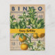 Collage digital de naranjas vintage y efímero de bingo con Feliz Cumpleaños