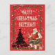 Postal Cumpleaños de Navidad Papá Noel Árbol Negro |