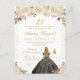 Esta elegante y glamurosa invitación de cumpleaños presenta a una bella princesa con cabello rubio y piel clara en un vestido negro de gala. El texto combina letra manuscrita y fuentes modernas sans serif para un look clásico y sofisticado. Las disposiciones florales, las mariposas y el confeti dorado crean la mezcla perfecta de rústico y chic.
