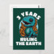 Cumpleaños de tres años del bebé dinosaurio gobernando la tierra. ¡Diseño gráfico para celebrar un tercer cumpleaños!