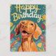 Saludo de cumpleaños del Vizsla. Un Vizsla sonriente desea Feliz Cumpleaños. Perfecto para todos los amantes del Vizsla y dueños de Vizsla.