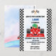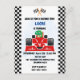 Postal Cumpleaños Dinosaurio coche de carreras niño rojo