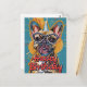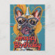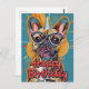 Un divertido Bulldog Francés con gafas y sombrero de fiesta desea Feliz Cumpleaños