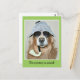 Esta tarjeta postal presenta a un perro golden retriever disfrazado de detective con un sombrero de diente de sabueso, pipa de disfraz y gafas de sol. El texto en el frente proclama, "¡El misterio está resuelto!" mientras que el texto en la parte posterior explica, "¡Estás viejo! Feliz cumpleaños a un viejo de oro." Ambos pueden ser cambiados o eliminados para adaptarse a sus necesidades.