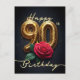 Postal Cumpleaños dorado 90 elegante rosa destello