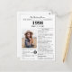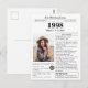Desea un feliz cumpleaños con esta tarjeta de cumpleaños única de estilo periódico, que incluye una foto del destinatario y una colección de datos divertidos y noticias del mundo de 1998. Sé creativo y crea un recuerdo personalizado. Diseñado para parecerse a un periódico vintage en estilo clásico en blanco y negro. ¡Una forma linda y divertida de celebrar los noventa!