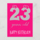 Esta es una tarjeta postal de impresión de FELIZ CUMPLEAÑOS de color rosa caliente lindo para alguien que cumple 23 años.