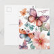 Las mariposas y flores de acuarela decoran esta tarjeta postal de felicitación personalizada con un mensaje de cumpleaños. Personalízala añadiendo tu propio texto en la parte frontal o interior de la tarjeta. Disponible también como tarjetas de felicitación, postales y descargas digitales. Envíame un mensaje si deseas algo personalizado.