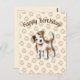 La parte frontal de la tarjeta presenta una adorable ilustración de un divertido cachorro de Jack Russell Terrier con huellas de perro en el fondo. Texto editable.