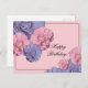 Postal Cumpleaños Feliz Flores Rosadas y Moradas