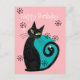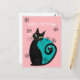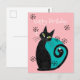 Este diseño de tarjeta postal de cumpleaños moderno de mitad de siglo presenta un gato atómico con elementos de diseño retro y paleta de colores azul y rosa.