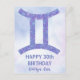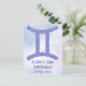 Esta bonita tarjeta postal personalizada de cumpleaños de Géminis en morado y lavanda presenta tu signo astrológico del Zodiaco con un hermoso brillo como las constelaciones. Personaliza este lindo diseño de astrología con tu nombre en letra cursiva para alguien con cumpleaños a finales de mayo o principios de junio.