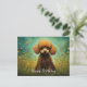 Postal Cumpleaños Feliz Prado de Flores Caniche Bonito