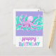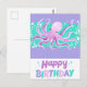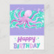 Postal Cumpleaños Feliz Pulpo Purpura Lindo Brillante Col