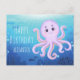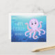 Una tarjeta postal azul de cumpleaños feliz de un pulpo de dibujos animados morado lindo debajo del agua. puede personalizar el nombre y el texto.