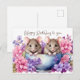 Postal Cumpleaños Feliz Ratones de Acuarela en una Taza d