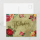 Postal Cumpleaños Feliz Rosas Vibrantes Vintage y Violín