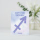 Esta bonita tarjeta de cumpleaños personalizada con morado y lavanda para Sagitario presenta tu signo astrológico del Zodiaco en un hermoso brillo como las constelaciones. Personaliza este lindo diseño de astrología con tu nombre en letra cursiva para alguien con cumpleaños a finales de noviembre o principios de diciembre.