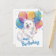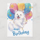 Samoyed Adorable con globos de cumpleaños desea Feliz Cumpleaños