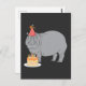 Hipopótamo de cumpleaños divertido con pastel, velas y sombrero de fiesta. Regalos de fiesta de celebración de cumpleaños de animales divertidos del zoológico.