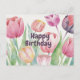 Postal Cumpleaños Feliz Tulipanes Acuarela Floral Abstrac