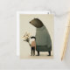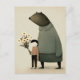 Tarjeta postal de osito hada de dibujos animados lindos y niño con flores